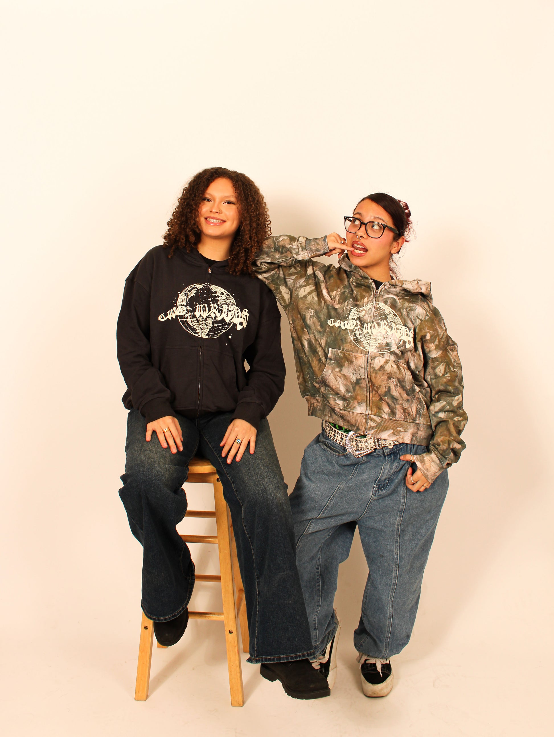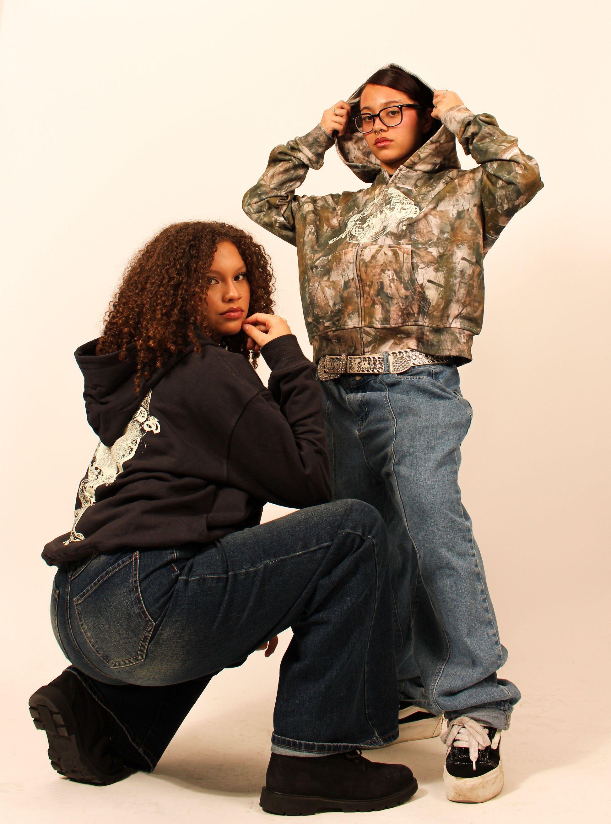 This product is a 360 GSM, 100% French Terry Cotton zip-up hoodie featuring a front and back screen-printed design. This product is also a equipped with kangaroo pockets, a wide double layer hood, and cropped fit.